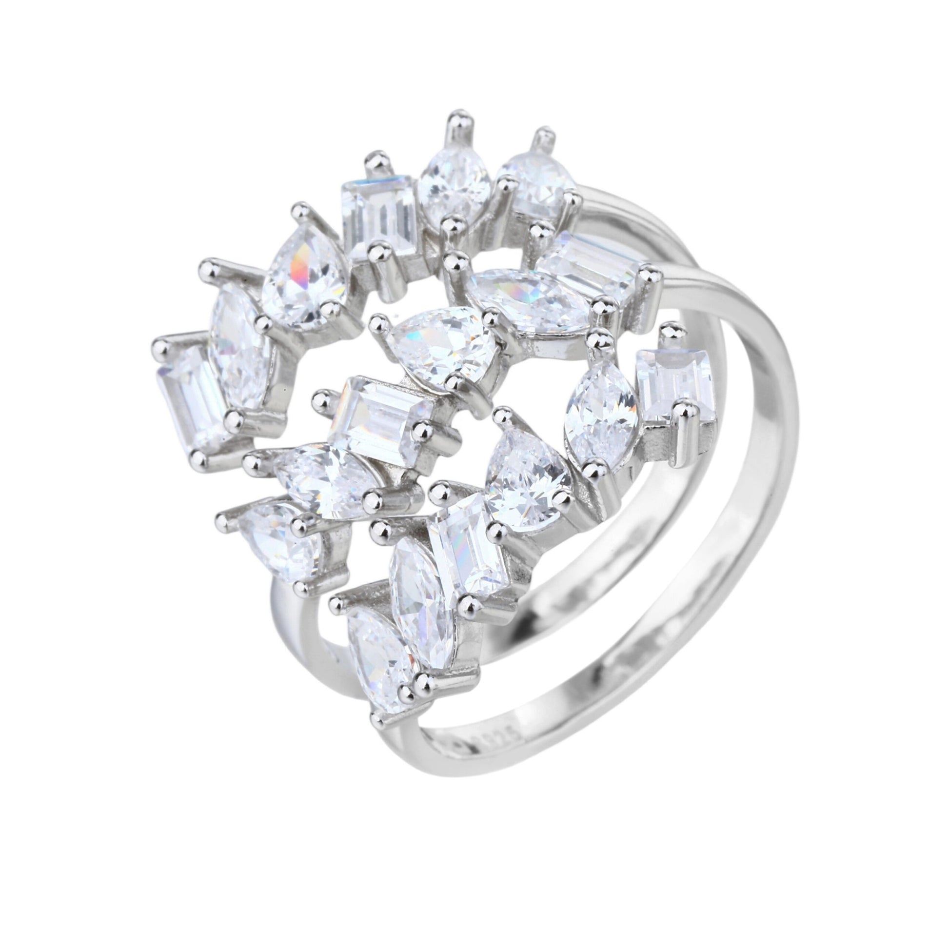 טבעת כסף אלגנטית ומשובצת אבני זרקון נוצצות, המשלבת עיצוב מודרני עם איכות פרימיום.